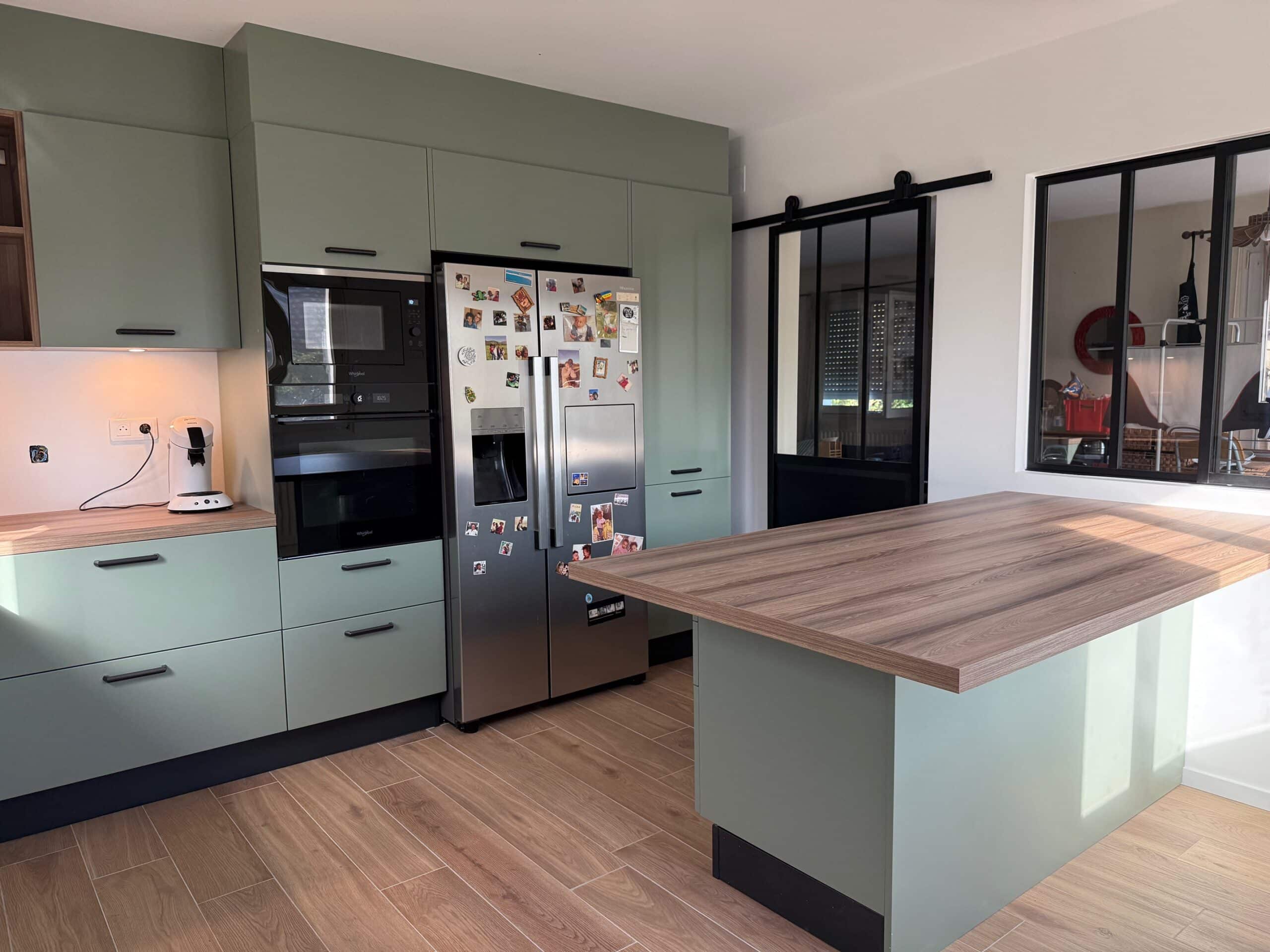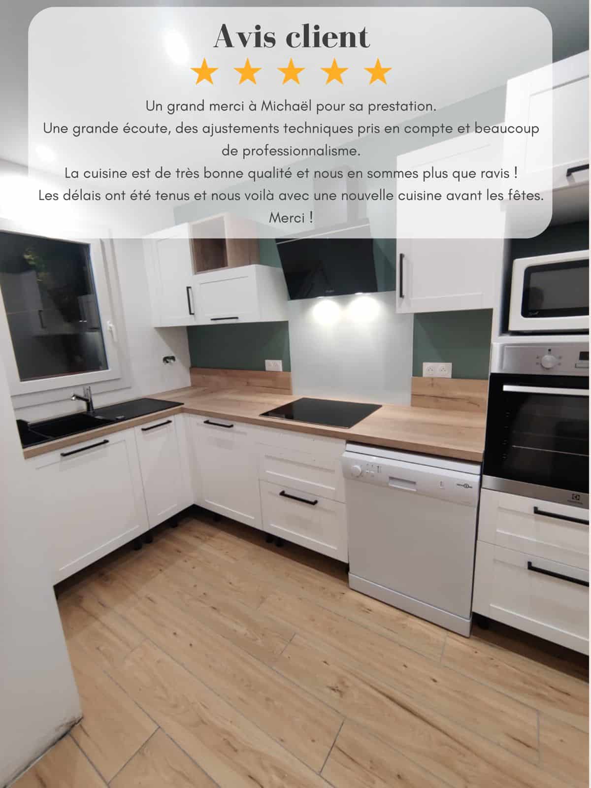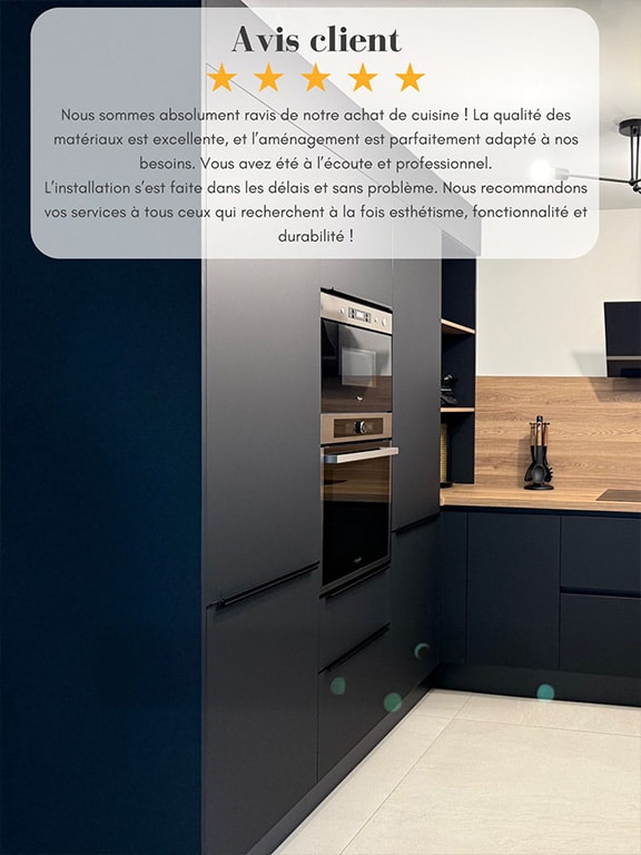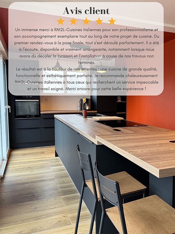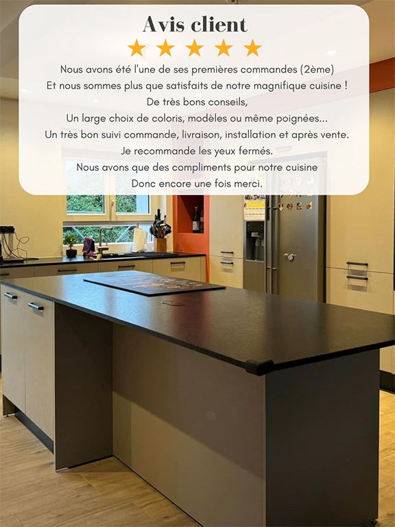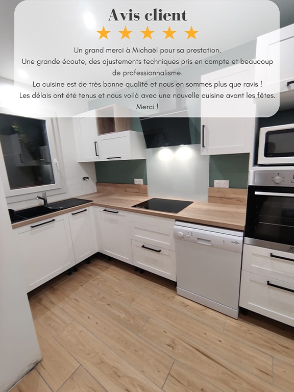 Une pose de qualité : Une belle cuisine n’a de valeur que si la pose est parfaitement réalisée. C’est pourquoi je travaille avec un poseur expérimenté et méticuleux dont l’expertise et le souci du détail garantissent une installation précise et soignée.