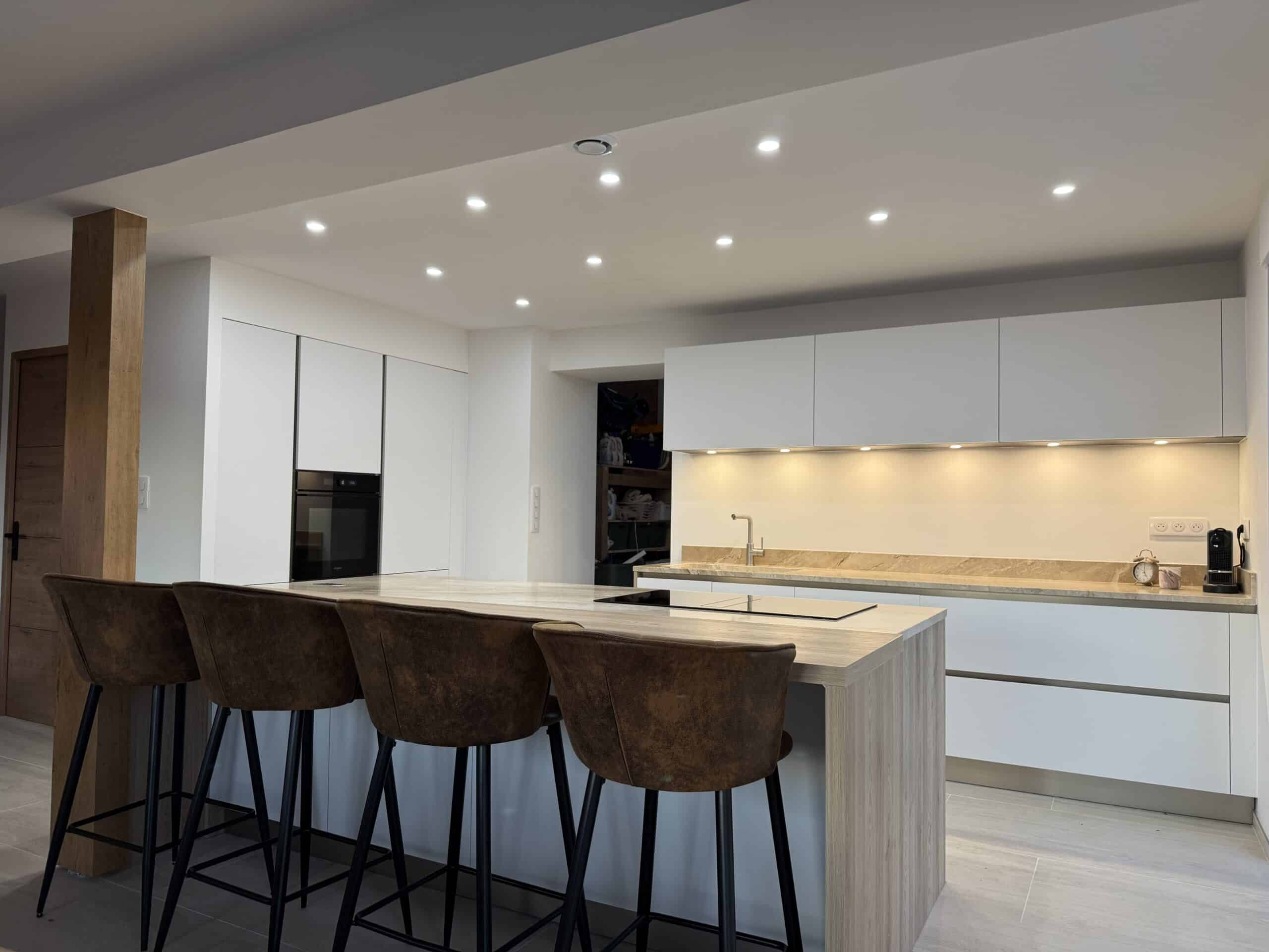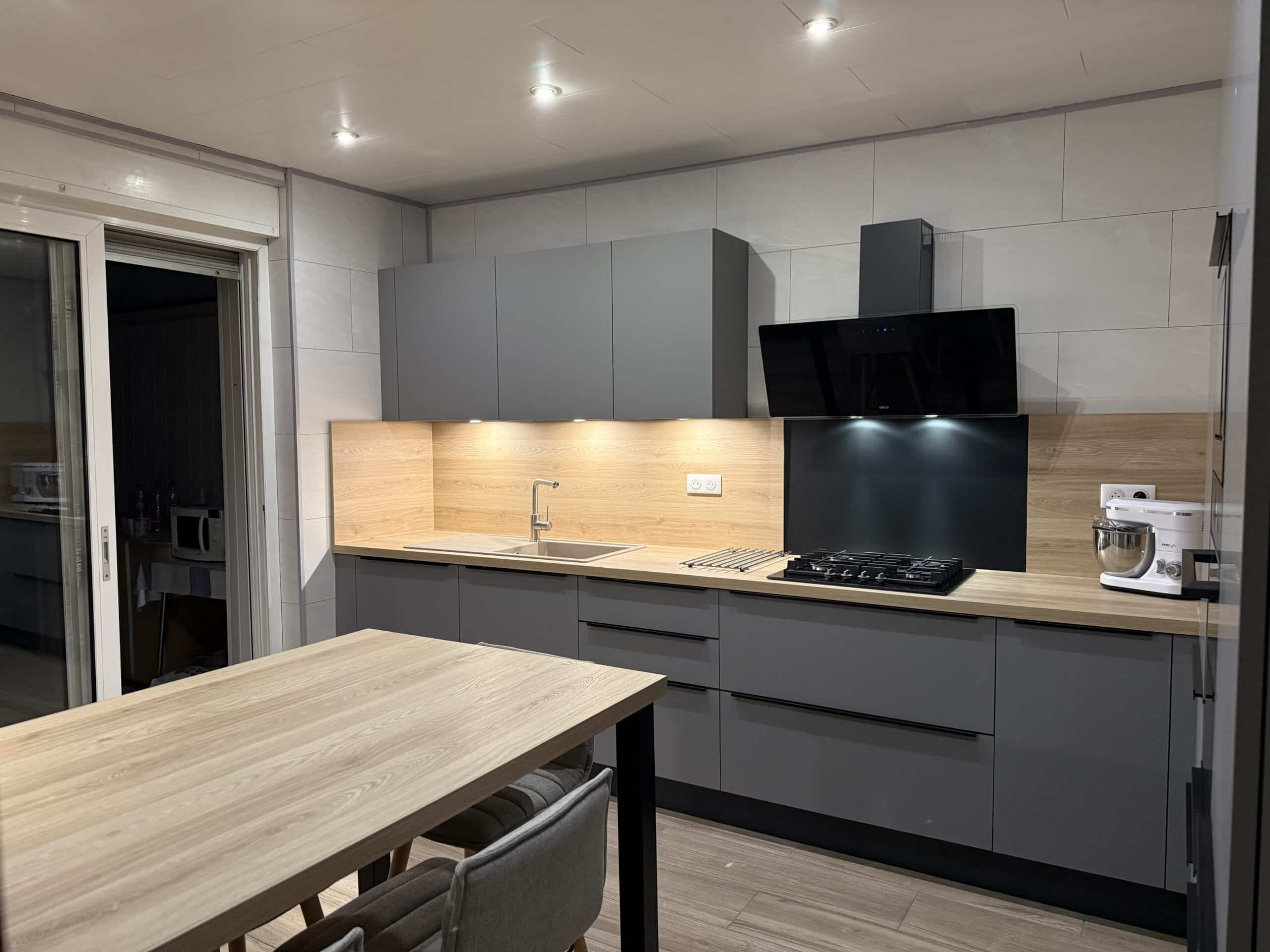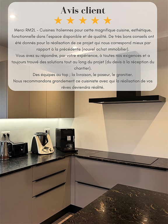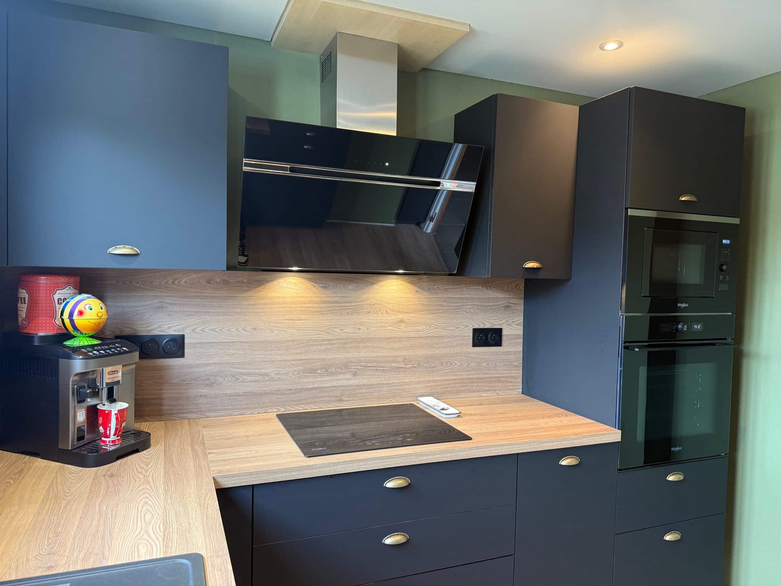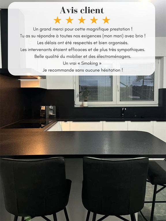 Une pose de qualité : Une belle cuisine n’a de valeur que si la pose est parfaitement réalisée. C’est pourquoi je travaille avec un poseur expérimenté et méticuleux dont l’expertise et le souci du détail garantissent une installation précise et soignée.